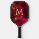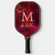 Palas De Pickleball Elegante Ruby Red Gold Monograma Nombre inicial