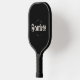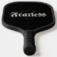 remo cristiano de bola de pickleball con escritura gótica gris claro sobre fondo negro. Guarda un registro de tus declaraciones proféticas y promesas que no tienes miedo en Dios. Verso de la Biblia: En Dios no tengo miedo 2 Tim 1:7