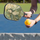 An enchanted magical forest fairy, pickle ball paddle for those who love fantasy themes, with your name in a decorative typography. gold and green hues. A great gift for kid's.