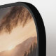 Imagen de tono sepia de un estante de doce puntos en un ciervo en el borde del valle de montaña