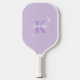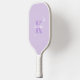Paddle de pickleball moderno con monograma personalizado y nombre en diseño femenino bonito en lavanda pastel, color malva lila, con detalles de chispa retro a la moda