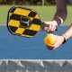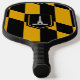 Pickleball Paddle with flag of city of Baltimore, Maryland; black and yellow flag with an illustration of Battle Monument