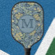 Este remo de bola de picnic para damas de personalizable presenta un patrón amarillo y azul adaptado a un diseño de William Morris, con un monograma personalizable. Es un accesorio elegante que sería un buen regalo para cualquier mujer que juegue pickleball.
