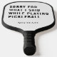 Gran paddle de bolas de cumpleaños para papá o mamá. La moderna tipografía negra muestra una mordaza que dice "Lo siento por lo que dije mientras jugaba a la pelota". Añadir un nombre haciendo clic en el enlace "Personalizar" anterior