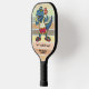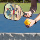 Rex, tirannosaur, puede ser conocido por sus brazos pequeños y débiles - pero ha estado golpeando el gimnasio, y está listo para ganar en pickleball. Este divertido diseño de pádel personalizado muestra un dinosaurio azul T-Rex sosteniendo una pala de pelota de pickleball y una bola. El T-Rex está usando ropa de entrenamiento, con banda de sudor. El fondo tiene rayas retro. El texto actual dice, "¡No seas un perdedor de SAUR!", con espacio para tu nombre (pero puedes personalizarlo de la manera que quieras). El diseño se repite en la parte posterior.
