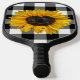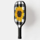 Girasol amarillo con centro en forma de corazón y mariquita sobre manto de búfalo blanco y negro.