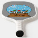 Un ilustracion de un lindo globo de nieve con tres gnomos de búho usando un colorido sombrero de santa en un paisaje nevado con un pino. Uno de los gnomos de búho sostiene un hacha. Este diseño personalizado de Navidades con cúpula de nieve o globo acuático es un regalo para los amantes de las aves, las navidades y los amantes de las vacaciones invernales. Personalice o personalizar esta paleta de pickleball agregando su nombre o texto.