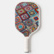 Los cuadrados de granito de crochet multicolor están dispuestos en una cuadrícula cada uno con un patrón único de formas concéntricas