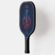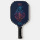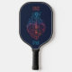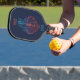 Este diseño de remo de pickleball celebra el amor por la música y la guitarra. Tiene un ilustracion simplista de una guitarra electrónica rodeada por un gran corazón de neón y notas musicales.