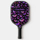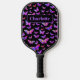 Añade tu nombre a esta paleta de pickleball de patrón de mariposa púrpura de bonito usando la plantilla y crea un regalo deportivo único que no encontrarás en la calle principal. Una colorida acuarela mariposa diseño de arte en rosa, púrpura y amarillo sobre un fondo negro. ilustraciones de arte de mariposa bonito obra de la artista Catherine Sweetman