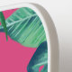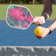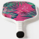Luminoso patrón de oasis tropical con flores de hibisco rosa tropical pintadas a mano con hojas de palmera verdes tropicales. Los vivos tonos rosa y verde crean este bonito diseño de inspiración tropical. Personalice la paleta de pickleball con su monograma para obtener un aspecto personalizado único. Obra de Moodthology.