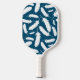 ¡Esta pádel de pickleball personalizada es un pato! Presenta un ilustracion de estilo simple y realista de un pato blanco con la factura naranja y los pies sobre un fondo azul marino con tu propio nombre o mensaje corto con letras blancas debajo. En la parte trasera hay un patrón de coordinación de plumas de pato blanco contra un fondo azul marino. Es perfecto para los amantes de los animales y los aficionados al pato a los que también les gusta jugar a la pelota de pepinillo.