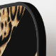 Para la mujer de diseño que le gusta jugar al pickleball, este remo personalizado tiene un diseño de estampado de leopardo en tonos marrones, marrones, negros y beige a ambos lados del remo. La parte frontal del diseño tiene una banda diagonal de negro sólido con una plantilla de texto para personalizar con su nombre u otro texto deseado. Este artículo hace un maravilloso regalo personalizado para alguien especial.