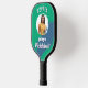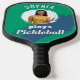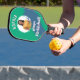 Un remo de pickleball moderno y de moda, para personalizar con una foto y un nombre sobre un fondo verde vibrante
