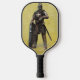 Una pala de pelota de fusilería con la imagen de un caballero contra un fondo dorado.
