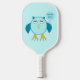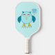Este impresionante Paddle de pellebol presenta un lindo personalizado de un búho azul con ojos somnolientos, un pico abierto y unas plumas adorables. El búho sostiene un globo azul en polvo. Hay un texto azul pálido en el globo que dice "Niño chico". Este es el regalo perfecto para celebrar a un bebé recién nacido.
