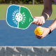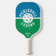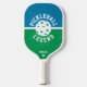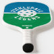 Paddle verde y azul de la cancha de tenis de pickleball con texto blanco: Leyenda de baloncesto. Diseño unisex para hombres y mujeres.