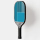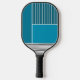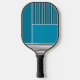 Esta paleta de pickleball tiene un diseño geométrico de un gran rectángulo verde azulado en la esquina superior izquierda, bandas verde azuladas más oscuras en la esquina superior derecha, un rectángulo verde azulado más pequeño más ligero debajo de las rayas y líneas negras en la parte inferior. Si te gusta el diseño pero prefieres colores diferentes, envíame un mensaje.
