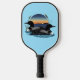 Dos lomos en el lago con una puesta de sol y se colocan detrás de ellos en un fondo azul