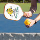 Puntee a lo grande en la cancha con este divertido remo de pelota de pickleball con una graciosa mascota personalizado y texto que dice "Juguemos". Personaliza con tu texto personalizado: nombre, monograma, nombre del club de pickleball, nombre de la empresa, ubicación, número de teléfono, etc. Un regalo perfecto para los cumpleaños o las vacaciones - para adultos, niños, madres, padres o cualquiera que ame el increíble juego de pickleball.