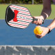 Este diseño de pádel caprichoso presenta una camisa roja, blanca y negra. La camisa tiene botones de color plata y corbata de arco rojo. La parte posterior de la paleta es negra con una zona en la que se puede personalizar el remo. Estas paletas están aprobadas para su uso por USA Pickleball (anteriormente USAPA). Las palas están impresas con mis patrones y diseños originales; casi todas pueden ser personalizadas. Puedes elegir tu color de agarre, negro, blanco o bronceado. Por un suplemento, podrá adquirir una cubierta protectora y una pelota de baloncesto al aire libre.