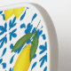 This unique pickleball paddle features a blue French country tile lemon pattern. It is easily customizable with your monogram and name.