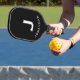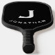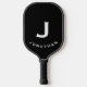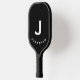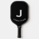 El moderno diseño masculino presenta un fondo negro con una plantilla fácil de usar para una sola letra y un nombre en la elegante y clásica escalera de cuero profesional. El diseño se repite al revés. Perfecto regalo de pickleball para él.