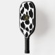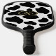 Impresión de vacas en blanco y negro con monograma dorado, remo de pickleball con el mismo diseño en ambos lados. Monograma óvalo negro y monograma dorado que se pueden cambiar a un nombre o a cualquier texto como prefiera.