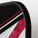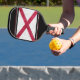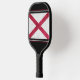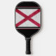 Ambos lados de este remo de pickleball muestran una imagen de una bandera del estado de Alabama de aspecto metálico, con los colores habituales de rojo y blanco. La imagen se coloca sobre un fondo negro con bordes de rayas rojas y blancas. Una cara tiene su monograma en blanco en la parte inferior.