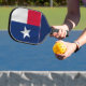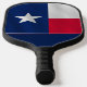 Ambos lados de esta pádel de pickleball muestran una imagen de una parte de la bandera del estado de Texas de la Estrella solitaria, en los colores habituales de azul, blanco y rojo. Una cara tiene su monograma en blanco en la parte inferior.