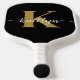 Este sencillo y elegante remo negro de bola de pickleball con tu primer nombre en un moderno tipo de letra de guión en blanco y tu primera inicial en un moderno tipo de letra de tope en oro es perfecto para ti. Es de diseño y a la vez muy clásico. Es único, como tú.