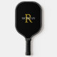 Palas De Pickleball Monograma dorado y nombre blanco en negro