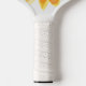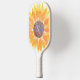 Este singular remo de pickleball está decorado con un girasol color amarillo acuático y una tipografía elegante. Personalizable fácil. Acuarela original © Michele Davies.