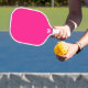 Paddle de bolas de bolas de pickleball moderno y rosa brillante con un fondo rosado brillante, con un texto en negrita en blanco, sencillo y elegante, pero profesional.