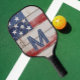 Palas De Pickleball Monograma Rojo Azul Rústico de Bandera Americana