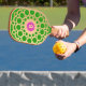 Palas De Pickleball Monograma rosa y verde - Círculos dorados