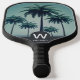 El remo de pickleball monograma presenta un diseño moderno de palmeras tropicales. Personalizar el texto con su monograma y nombre deseados. Utilice la plantilla para crear su propia paleta de bola de pickleball monográfica.