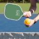 Crea tu propio remo de pickleball personalizado con iniciales elegantes de monograma y fondo estético de patrón a cuadros verdes