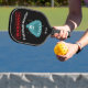 Personalizado diseñado con colores divertidos, esta paleta de bola de picnic exuda rendimiento y potencia con un fondo negro y un monstruo adorable de pickleball azul/verde. Personaliza con tu nombre. Gran regalo para cualquier jugador de pickleball - Navidades, cumpleaños, aniversario, o simplemente para hacer que alguien se sienta especial.