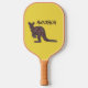 La pádel de baloncesto presenta silueta de canguro en un patrón de mosaico aborigen sobre fondo amarillo con "Australia" en texto de estilo grunge