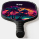 Sus iniciales en una escena retro de palmeras de neón por la noche. Muy ochenta.