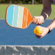 Este sencillo pero increíblemente elegante remo de bola de pickleball cuenta con bloques de color azul, verde y naranja con tu nombre (u otro texto) en un moderno tipo de letra de bloque blanco en la parte delantera y trasera.