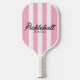 Una franja retro rosa y un diseño floral para mostrar tu lado juguetón en las canchas de pickleball. Las rayas y las flores son pasteles, rosados y blancos. Añade tu nombre para personalizar. Tipografía de escritura negra.