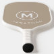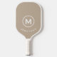 El diseño moderno y masculino presenta un fondo beige con una plantilla fácil de usar para una sola letra y un nombre en una tipografía de bloques clásica elegante. El diseño se repite al revés. Perfecto regalo de pickleball para él.