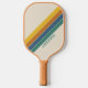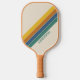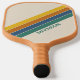 Crea tu propio retro personalizado de remo de repelente de pickleball. Presenta un diseño de franjas vintage abstractas y un nombre personalizado en una tipografía de estilo clásico.