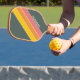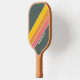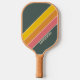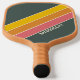 Crea tu propio retro personalizado de remo de repelente de pickleball. Presenta un diseño de franjas vintage abstractas y un nombre personalizado en una tipografía de estilo clásico.