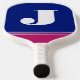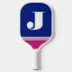 Esta paleta monogramada de pickleball es sencilla, moderna, minimalista pero audaz y colorida con sus rayas reales azules y rosas calientes y su primera o última inicial en blanco.