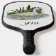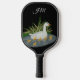 Goose con chismes nadando en un estanque. Personalice las iniciales de esta paleta de pickleball enmarcada en negro.