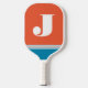 Esta paleta monogramada de pickleball es simple, moderna, mínima pero audaz y colorida con sus rayas verde azuladas y naranjas y su primera o última inicial en blanco.