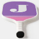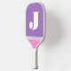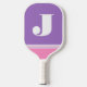 Esta paleta monogramada de pickleball es sencilla, moderna, minimalista, audaz y colorida con sus rayas moradas y rosas y su primera o última inicial en blanco.